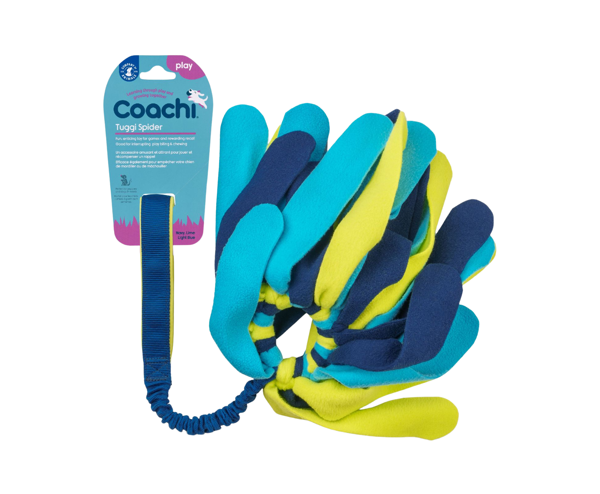 The Tuggi Spider from Coachi is a versatile tug toy designed to provide hours of interactive play for your furry friend. With its soft yet durable construction, this toy is perfect for games of tug-of-war and serves as a fun and enticing tool for rewarding recall training. It also aids in interrupting play biting and chewing behaviors.