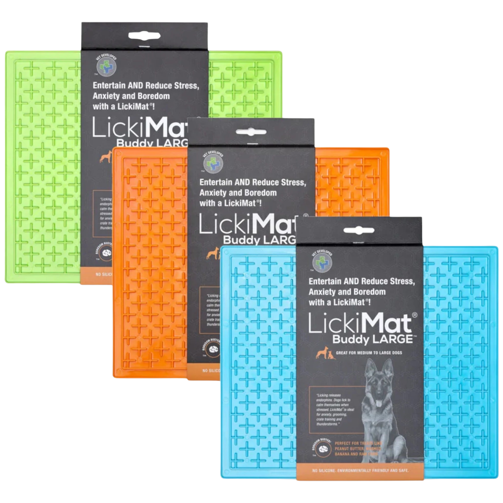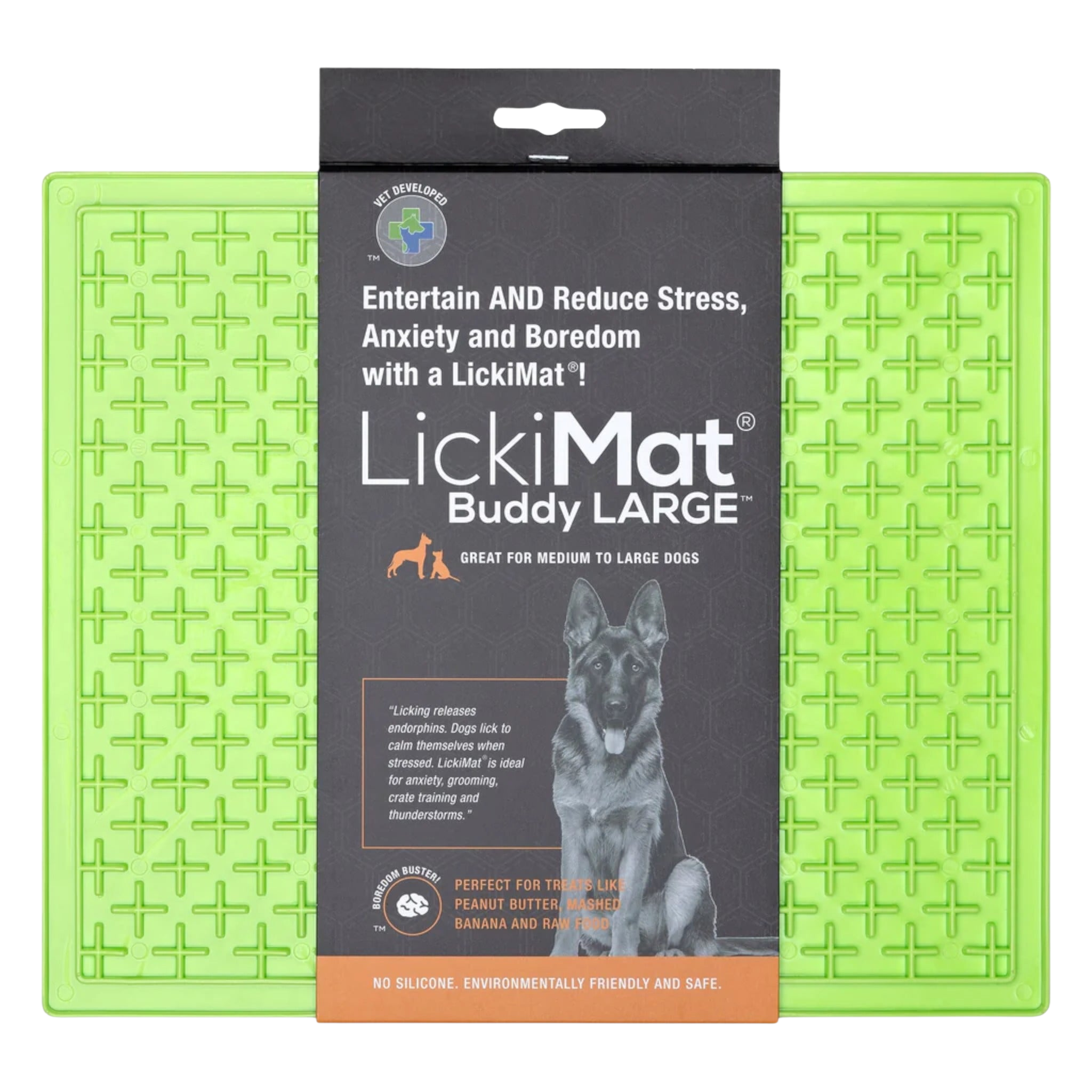 REDUCES ANXIETY, BOREDOM AND DESTRUCTIVE BEHAVIOUR – LickiMat helps calm and soothe your pet as they enjoy their favourite treat by helping release endorphins through the promotion of licking. Great for when you leave home, great for stressful times such vet visits, injections, bath time, nail clipping, injury recovery as well as thunderstorms and fireworks. Please remember to supervise your pet when first introducing them to LickiMat.