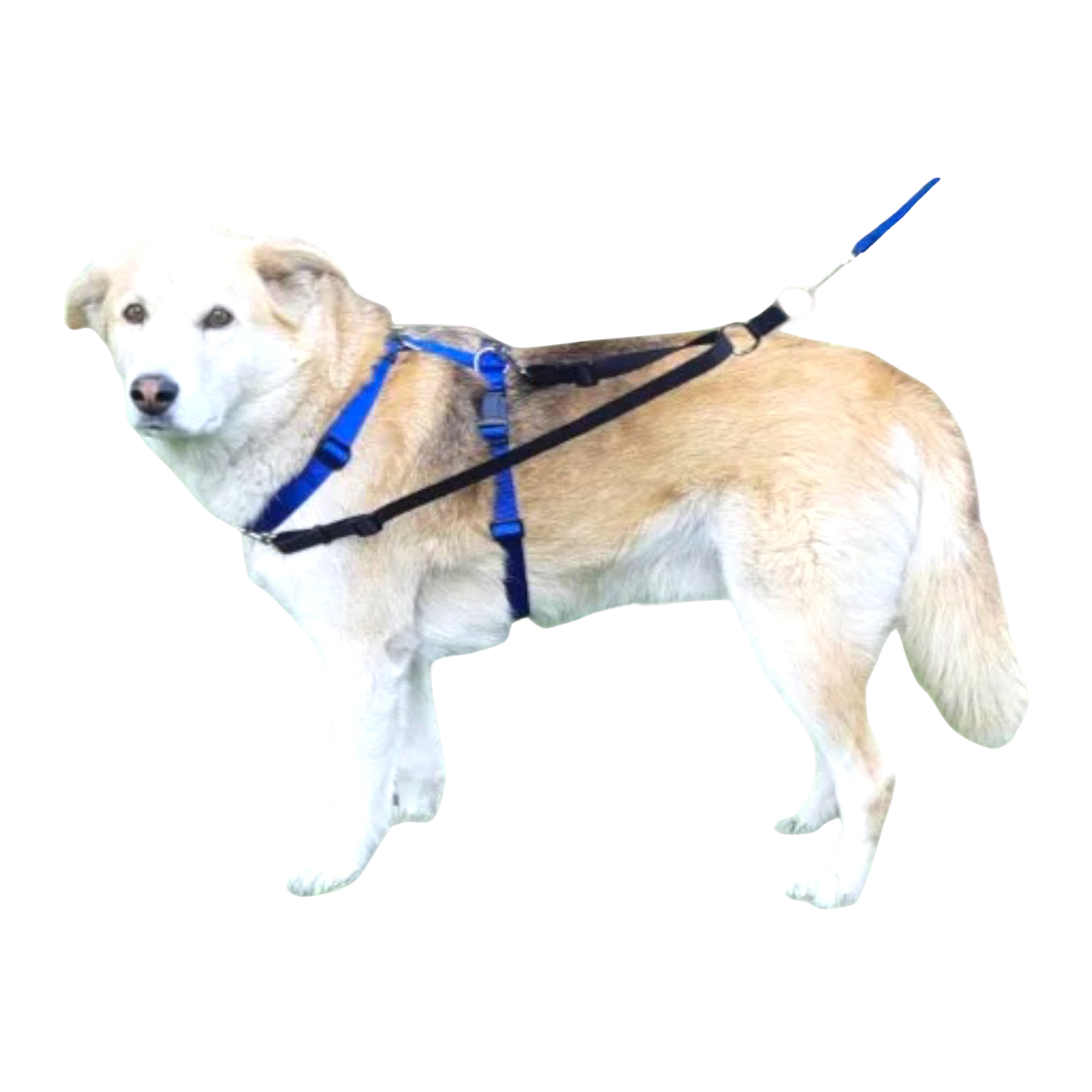 Robyn started using the concept in 2018 with very pulley dogs that needed a longer leash for more space. Typically a single point of contact is used with a long line. Unfortunately, when attached to only the front ring, the harness slides and pulls the dog out of balance laterally. When the line is only attached to the back ring, the pressure can create more forward pull in the dogs.
