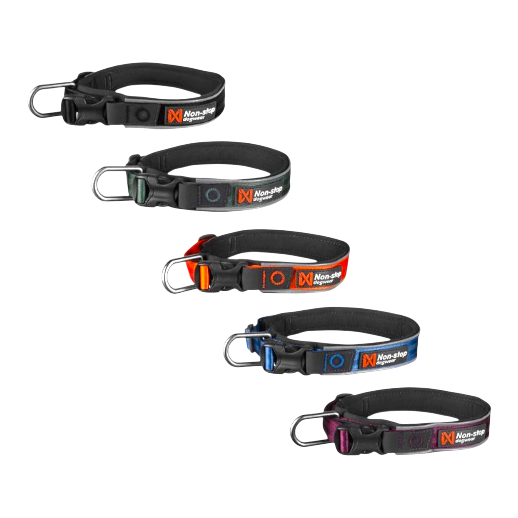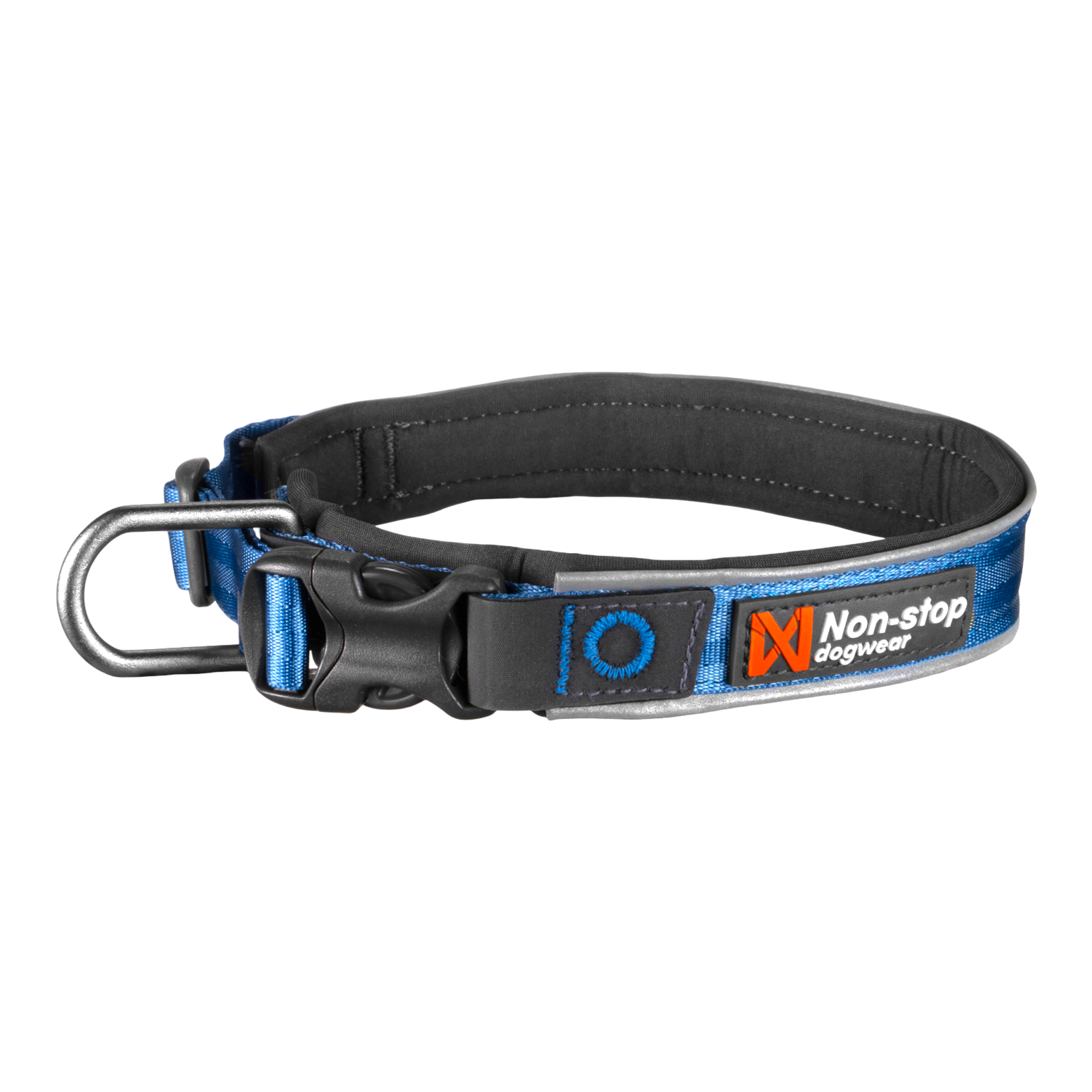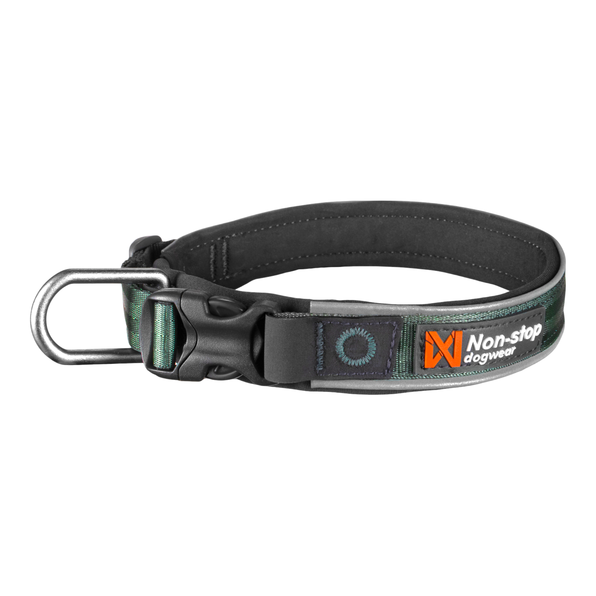 Mae coler Roam gan Non-stop dogwear yn goler addasadwy ar gyfer cŵn gyda phadio da. Mae'r bwclau'n gwneud gwisgo a thynnu'r goler yn hawdd mewn ffordd o fyw egnïol. Edauwch y bwcl trwy'r cylch-D wrth ei osod. Mae hyn yn dosbarthu unrhyw bwysau'n gyfartal ar draws wyneb y coleri, gan ei gwneud yn gyfforddus i'w wisgo. Mae tu mewn i'r goler Roam wedi'i badio â neoprene meddal a gwydn.