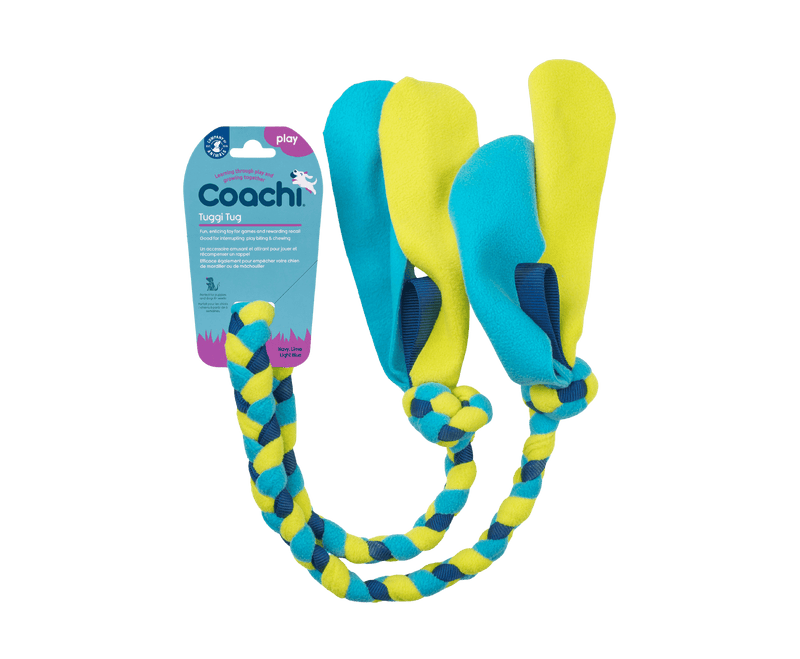The Coachi Tuggi Tug is the ultimate combination of a tug-of-war dog toy and a rope toy. Crafted with soft stretchy material and extra strength webbing, this toy ensures comfortable and durable play for both you and your furry friend. Designed for rough and tough play!