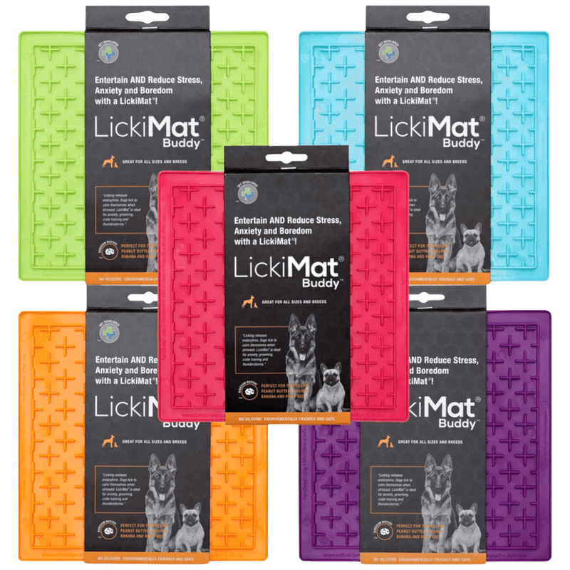 Authentic LickiMat® Boredom Buster for Dogs and Cats. Perfect for Pet Treats, Yogurt, Diluted Peanut Butter, Spreads, Raw Food, Liquid Food, Pet Food. Slow Feeder, Healthy and Fun Alternative to a Slow Feed Bowl. Available in a Variety of Colours.